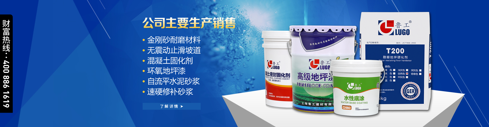 上海魯工建材有限公司——是一家集研發(fā),生產(chǎn),施工于一體的化學(xué)建材專(zhuān)業(yè)公司。產(chǎn)品主要包括環(huán)氧地坪,耐磨硬化地坪,運(yùn)動(dòng)場(chǎng)地,建筑干粉,以及建筑防腐,防水材料。 公司依靠科技人才優(yōu)勢(shì),采用進(jìn)口原料,不斷開(kāi)發(fā)新產(chǎn)品,并根據(jù)不同的客戶(hù)需要,從實(shí)際考慮設(shè)計(jì)恰當(dāng)?shù)姆桨?,得到客?hù)一致認(rèn)可,享有良好聲譽(yù)。 公司按照國(guó)家標(biāo)準(zhǔn)和行業(yè)標(biāo)準(zhǔn),制定嚴(yán)格的生產(chǎn)流程和施工工藝,嚴(yán)格按照ISO9001國(guó)際質(zhì)量體系生產(chǎn)施工,目前公司已全面實(shí)施一套現(xiàn)代化的科學(xué)管理模式,以確保企業(yè)健康,快速發(fā)展。 我們以“質(zhì)量為先,誠(chéng)信為本,服務(wù)為重”的 經(jīng)營(yíng)理念,以“精益求精,永無(wú)止境”的企業(yè)精神,為您提供優(yōu)質(zhì)產(chǎn)品和滿(mǎn)意服務(wù)。 ...